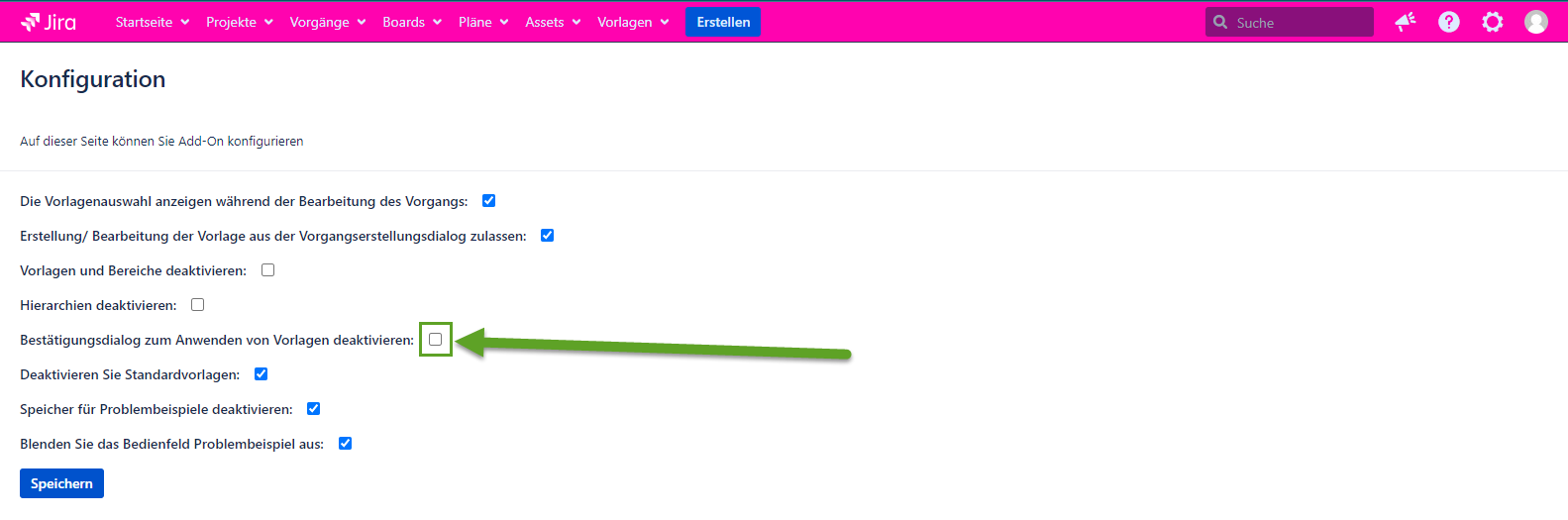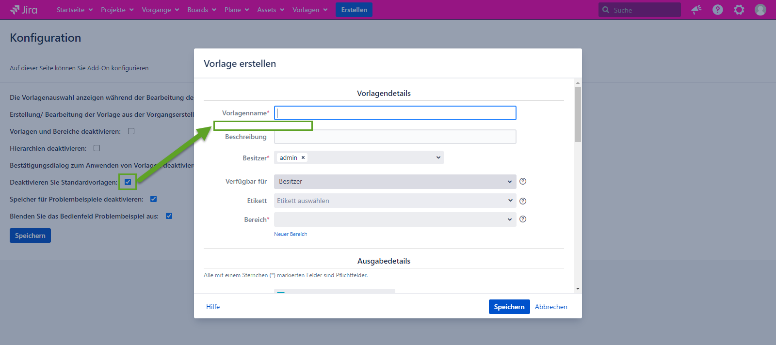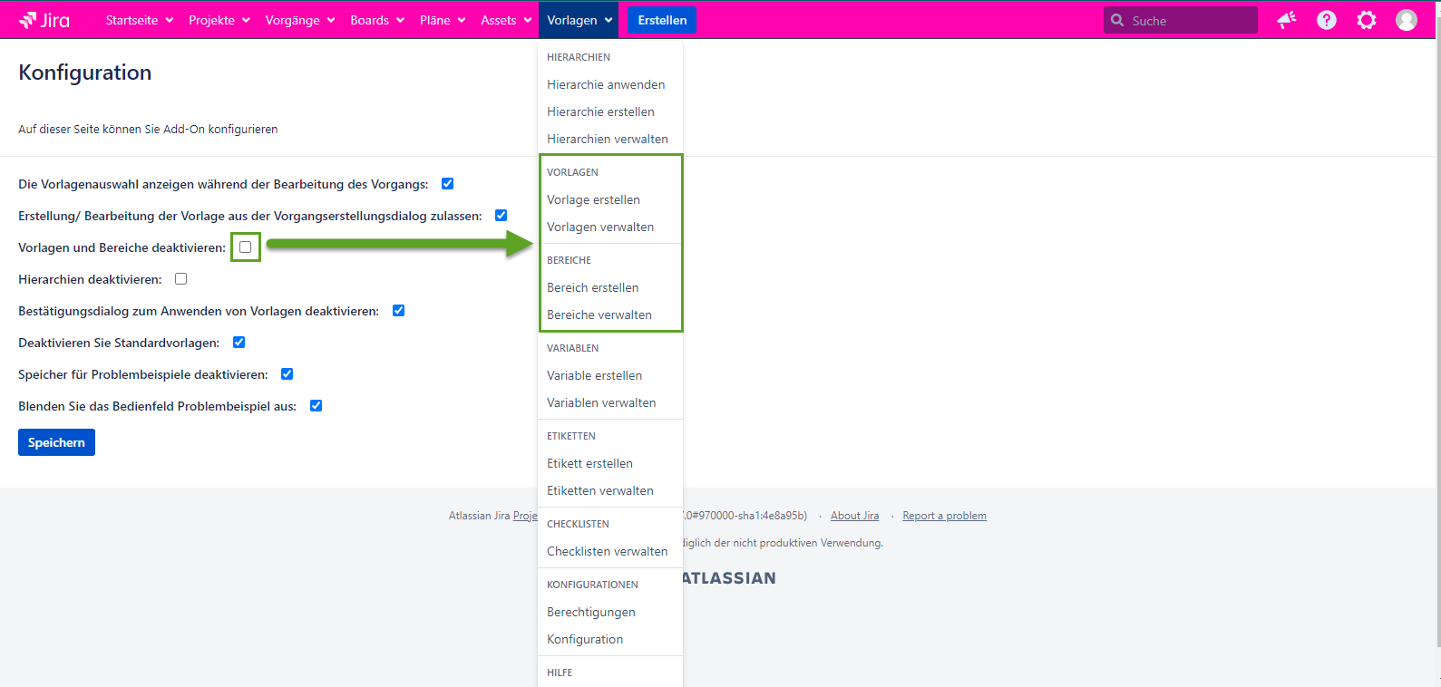 Vorlagen und Bereiche deaktivieren