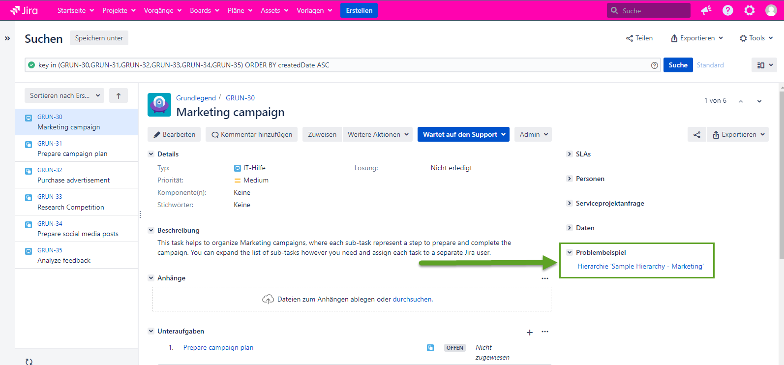 Die folgende Konfiguration aktiviert die Anzeige des aktiven Hierarchienamen-Links auf der Issue-Ansichtsseite, falls er deaktiviert ist.