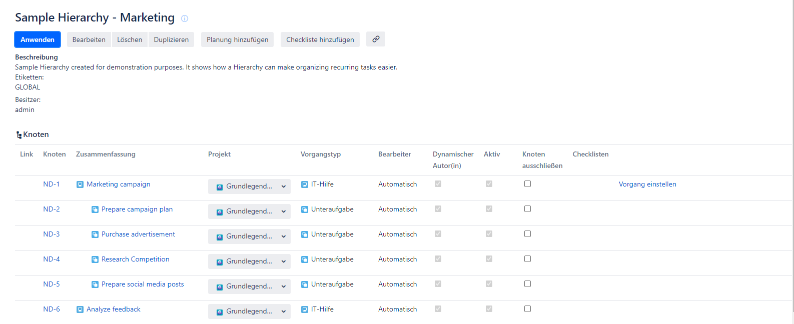Klicken Sie im Bedienfeld Problembeispiel auf den aktiven Link Hierarchiename.
