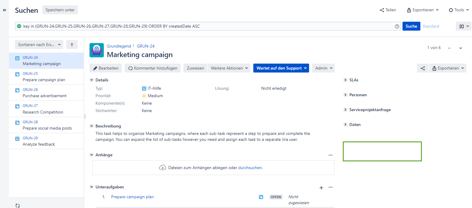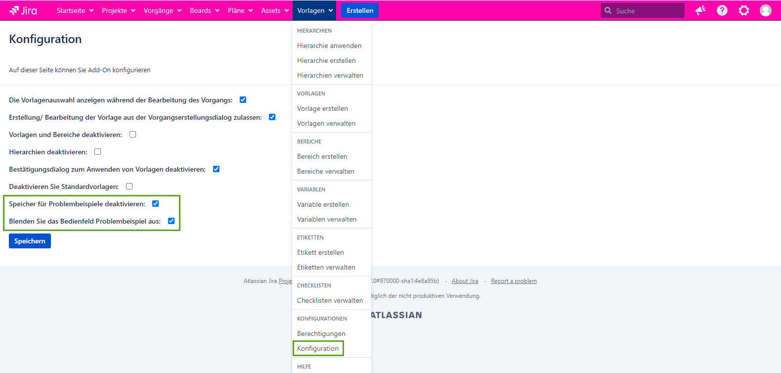 Bitte fügen Sie die Informationen über die Version von Jira und Add-On hinzu.