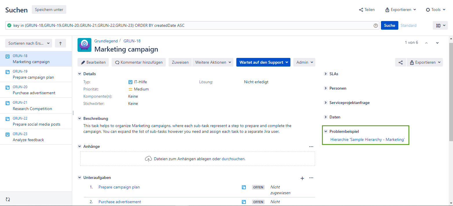 So zeigen Sie die Hierarchie an, mit der das Problem erstellt wurde