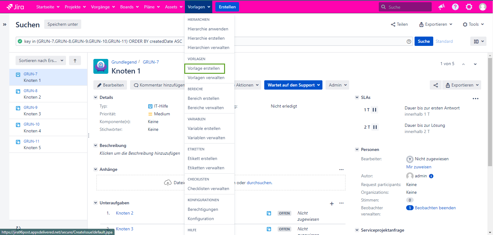 Für eine komfortablere Arbeit können Sie auf der Problemansichtsseite eine neue Vorlage erstellen, indem Sie auf die Schaltfläche Bearbeiten klicken