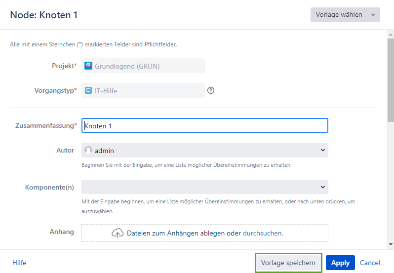 Standardmäßig unterstützen Vorlagen alle Standardfeldtypen, die in Jira Core, Software und Service Desk verfügbar sind. Jetzt mit Unterstützung für das Feld Anhänge 🎉