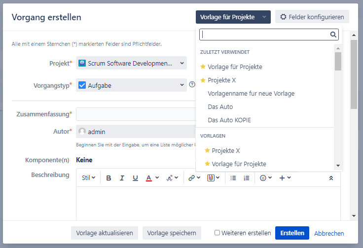 Dialoge Vorgang erstellen oder Vorgang bearbeiten.