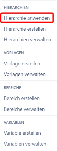 Diese Funktion ermöglicht es unseren Benutzern, die bestehenden Vorgänge mit Hilfe von Hierarchien mit neuen Unteraufgaben zu aktualisieren. Um es zu implementieren, sollten Sie einfach zum Abschnitt "Hierarchie anwenden" (oder "Hierarchie verwalten") der intelligenten Vorgangvorlagen gehen.