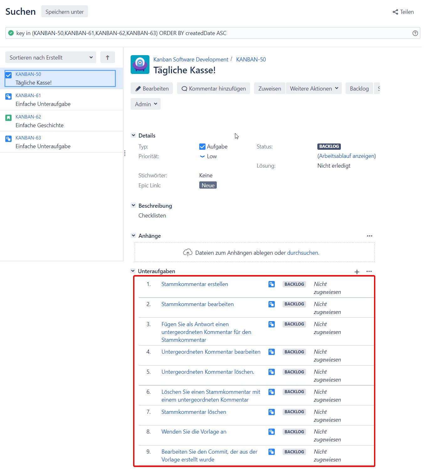 Bitte fügen Sie die Informationen über die Version von Jira und Add-On hinzu.