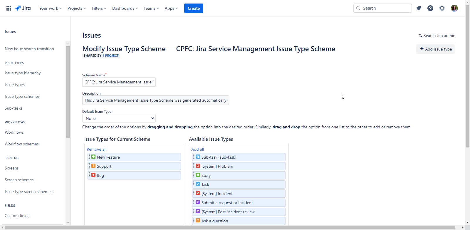 Click on 'Issue Types' in the side menu.
