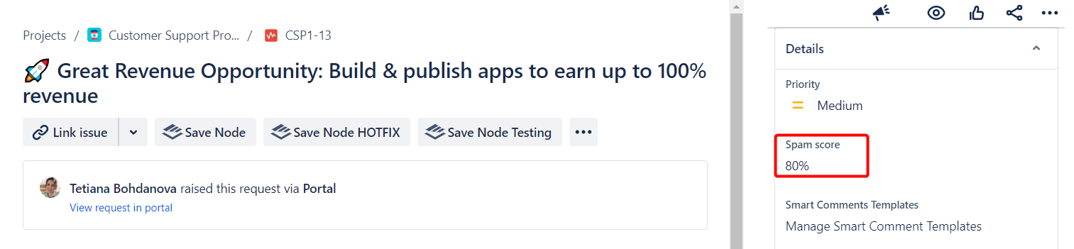 Now, the 'Spam Score' field will be visible on the Issue View page for newly created issues.