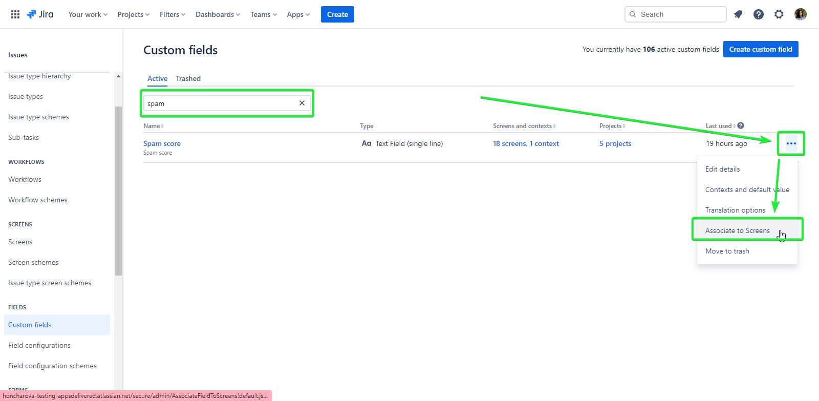 Adding the Spam Score field to the Issue screen: