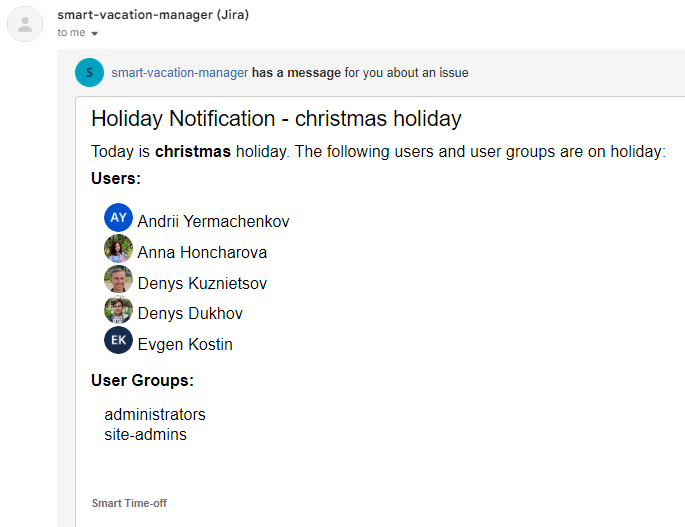 Users can choose to receive notifications about upcoming holidays either through Slack or via email.